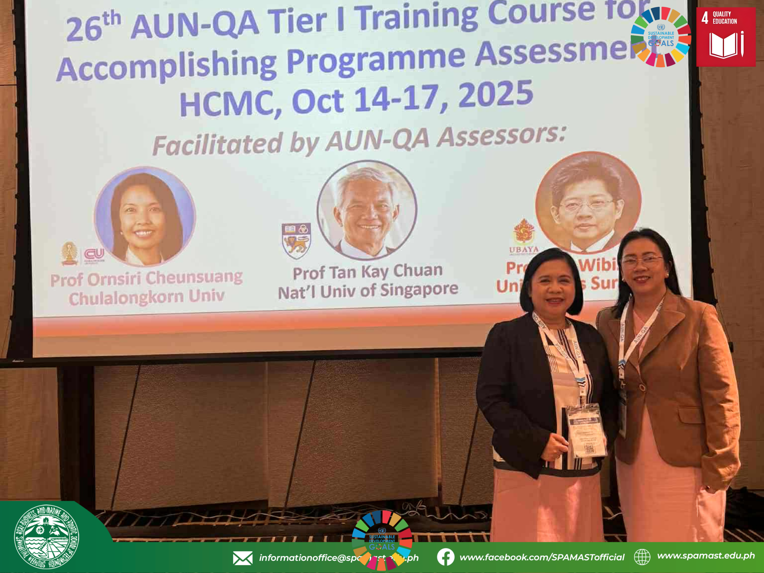 The Southern Philippines Agri-Business and Marine and Aquatic School of Technology (SPAMAST) continues to uphold its commitment to international quality standards as its College President, Dr. Lynette A. Bontia, and Quality Assurance Director, Dr. Jovelyn L. Franca, participated in the 26th ASEAN University Network–Quality Assurance (AUN-QA) Training Course for Accomplishing Programme Assessment, Version 4.0, held continue reading : SPAMAST Strengthens Global Quality Assuance Competence Through AUN-QA Training in Vietnam