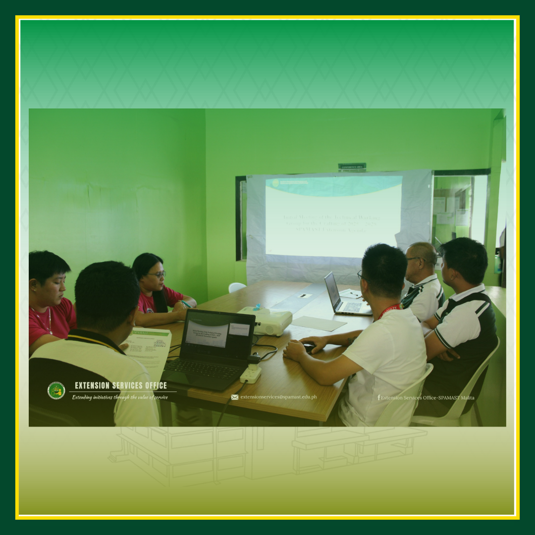 The Extension Services Office (ESO) of SPAMAST convened the Technical Working Group (TWG) of the different institute for the initial meeting on the revision of the SPAMAST Extension Agenda for 2025-2029. The meeting was held on March 7, 2025, at the ESO Conference Room.This initiative aims to align SPAMAST’s extension programs with emerging community needs, continue reading : ESO Initiates Revision of SPAMAST Extension Agenda