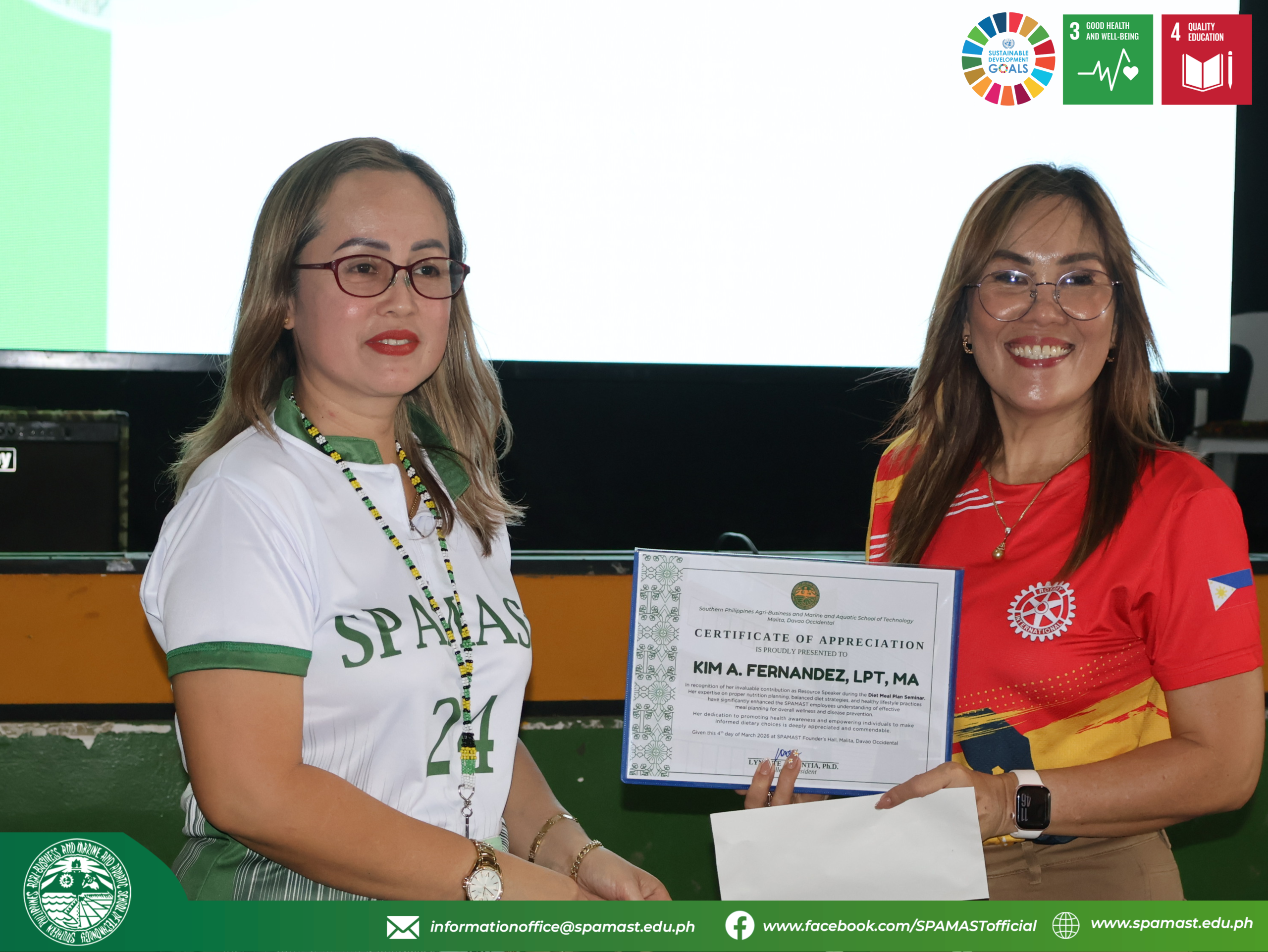 The Southern Philippines Agri-Business and Marine and Aquatic School of Technology (SPAMAST), through its National Service Training Program (NSTP) and Gender and Development (GAD) Offices, spearheaded the Davao Occidental Inter-Agency Community Outreach Activity held from November 25 to December 12, 2025, where the culmination ceremony was conducted at Tubalan Comprehensive National High School in Barangay continue reading : SPAMAST Leads Inter-Agency Outreach Advancing Women’s Rights and Volunteerism in Davao Occidental