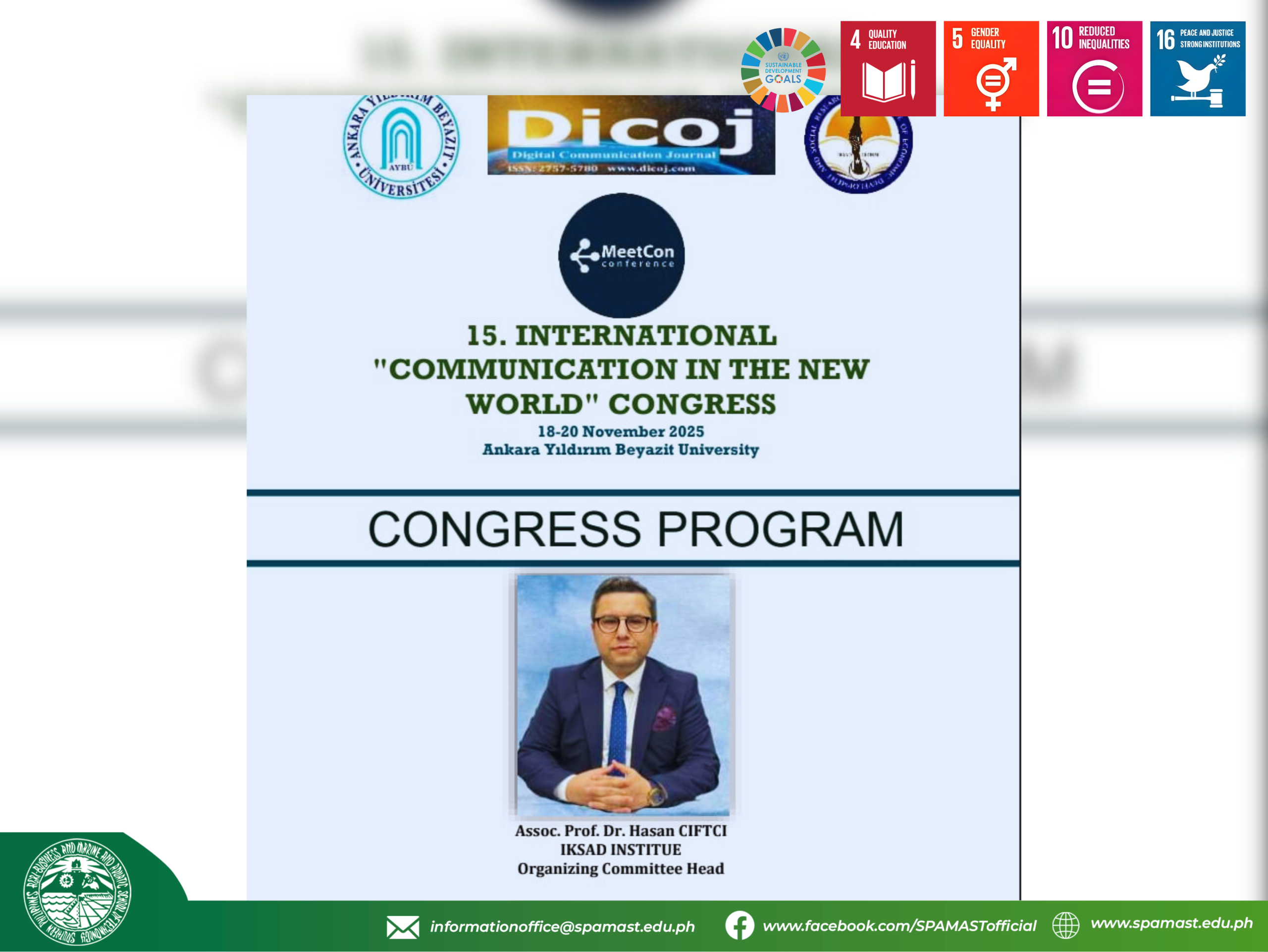 The Southern Philippines Agri-Business and Marine and Aquatic School of Technology (SPAMAST) marked another milestone in its growing international academic presence after participating in the 9th International Ankara Multidisciplinary Studies Congress held on November 13โ14, 2025, in Ankara, Tรผrkiye. Organized by the IKSAD Institute, the congress gathered scholars and researchers from different parts of the continue reading : SPAMAST Showcases Research Excellence at the 9th International Ankara Multidisciplinary Studies Congress