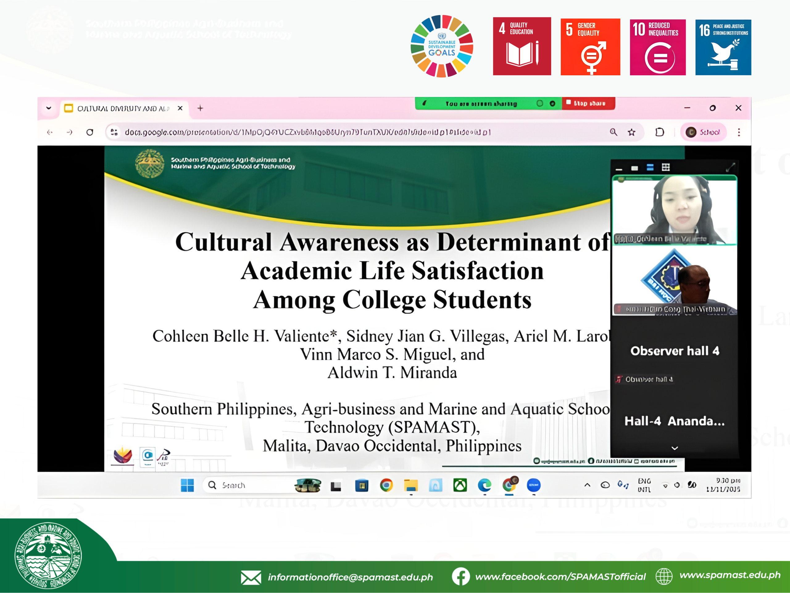 The Southern Philippines Agri-Business and Marine and Aquatic School of Technology (SPAMAST) proudly marked another milestone in its growing research culture as one of its institutional-funded studies earned international recognition. The project, โExploring the Influence of Gender Awareness, Cultural Awareness, and Religious Literacy on Shaping Studentsโ Academic Experience: Basis for Enhancing Student Services Program,โ led continue reading : SPAMAST Research Featured in the 15th International Communication in the New World Congress