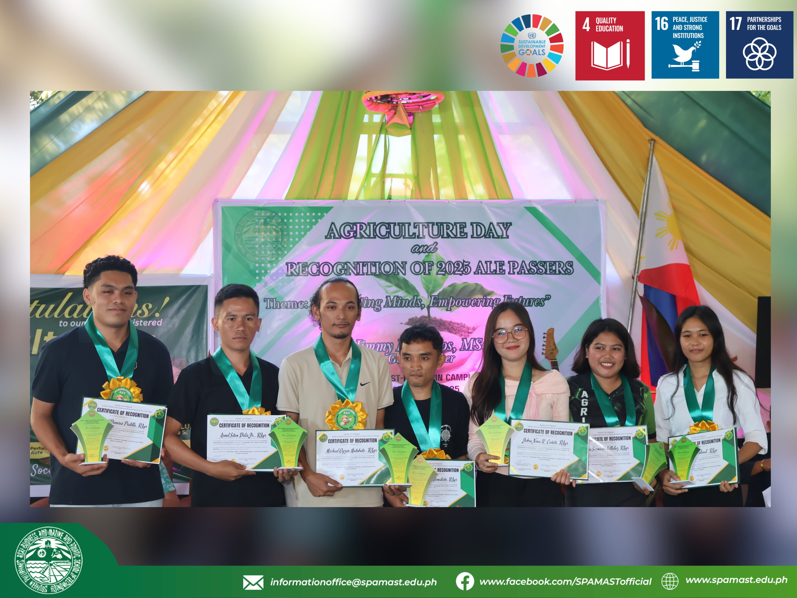 The Southern Philippines Agri-Business and Marine and Aquatic School of Technology (SPAMAST) formally recognized its newly minted Agriculturist Licensure Examination (ALE) passers during a celebratory program held on December 10, 2025, at the SPAMAST Buhangin Campus. The event highlighted the institution’s ongoing drive to elevate academic standards and strengthen its role in producing competent agriculture continue reading : SPAMAST Honors 2025 ALE Passers, Underscores Commitment to Academic Excellence