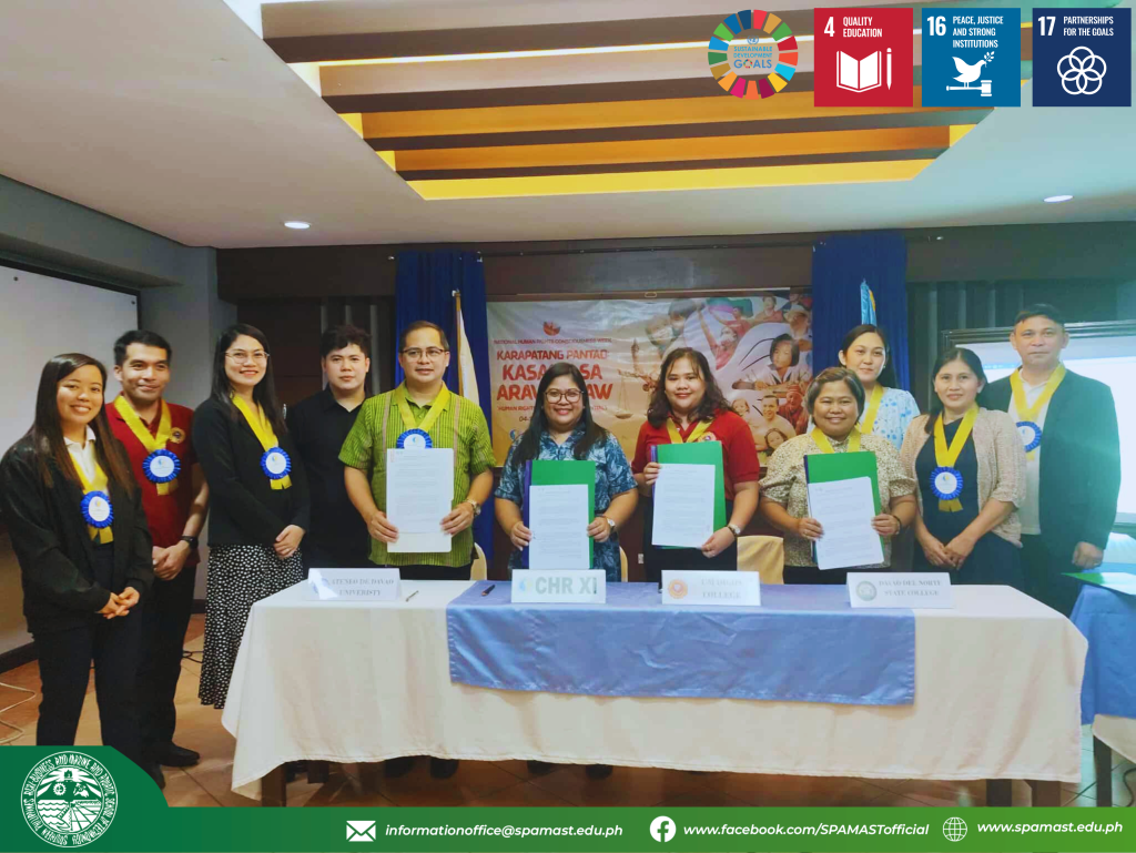 In recognition of its active role in promoting human rights education, SPAMAST received a Plaque of Recognition as a Center for Human Rights Education partner of the Commission on Human Rights Region XI. The institution also contributed to the planning and discussions of the CHRE initiatives, reaffirming its support for fostering a culture of respect, dignity, and civic responsibility.