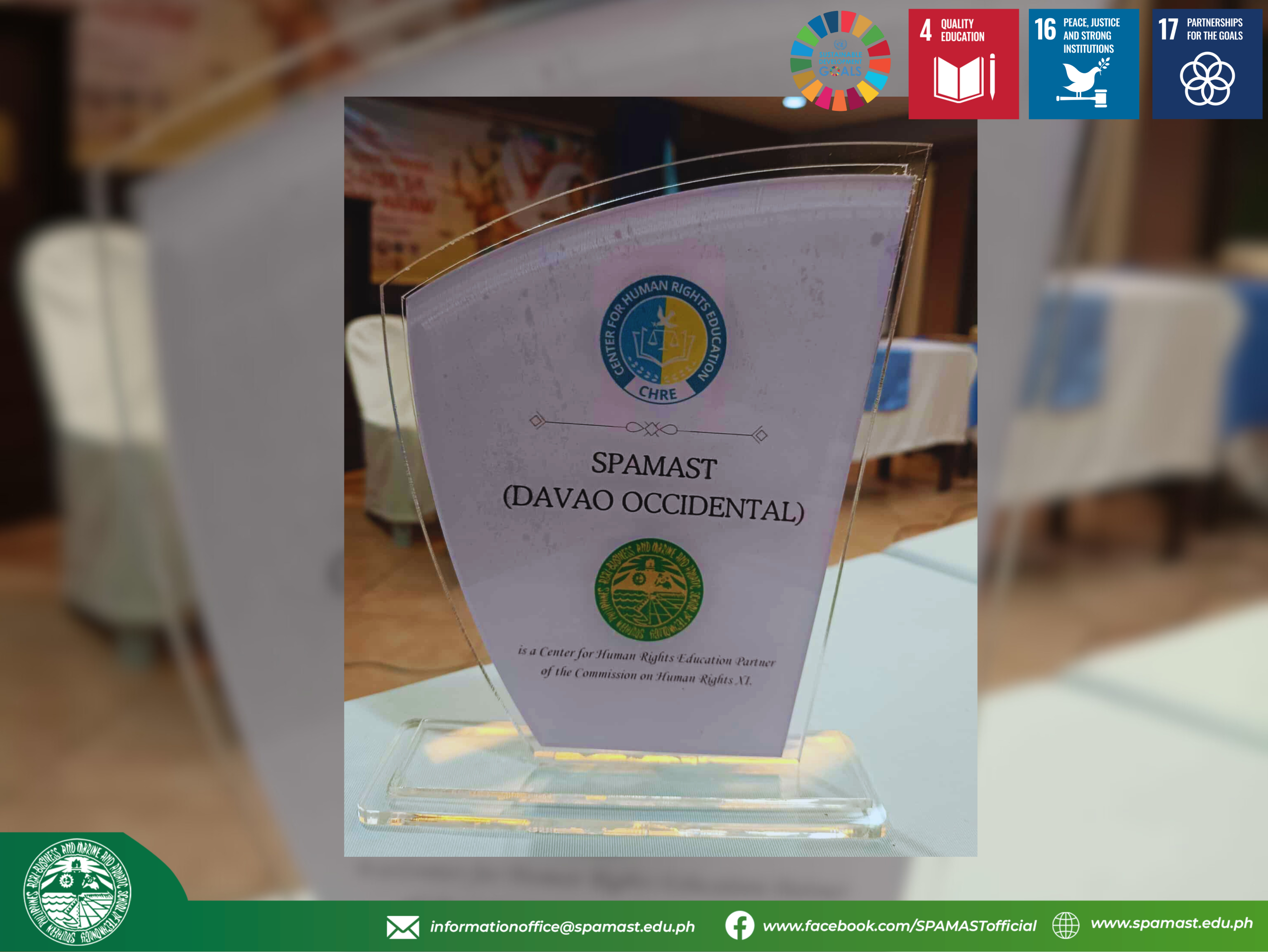 In recognition of its active role in promoting human rights education, SPAMAST received a Plaque of Recognition as a Center for Human Rights Education partner of the Commission on Human Rights Region XI. The institution also contributed to the planning and discussions of the CHRE initiatives, reaffirming its support for fostering a culture of respect, dignity, and civic responsibility.