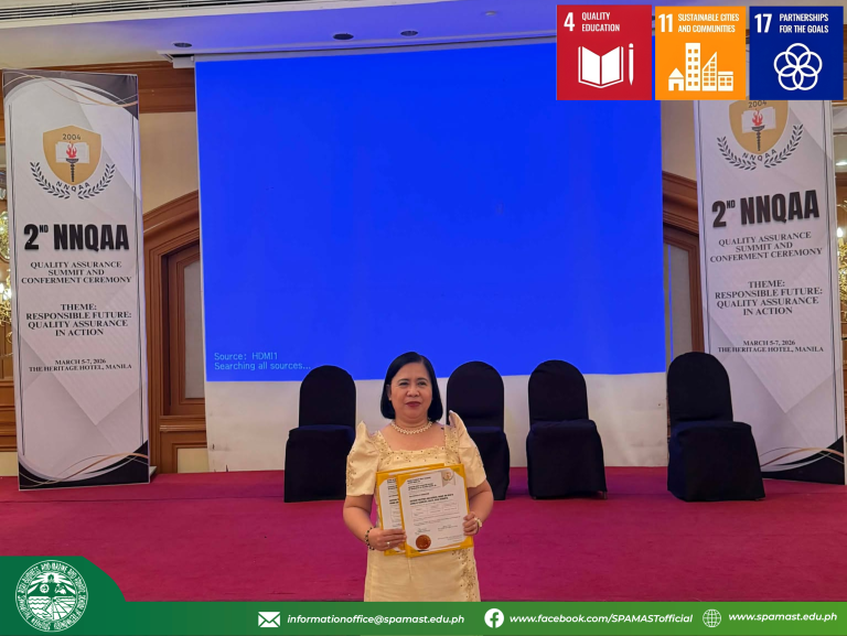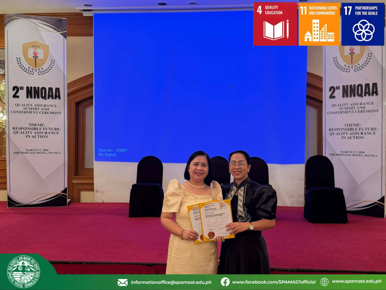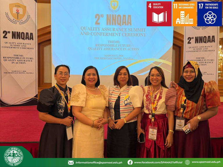 MANILA, Philippines – Demonstrating its continued commitment to academic excellence and institutional quality, the Southern Philippines Agri-Business and Marine and Aquatic School of Technology (SPAMAST) was represented by its President, Dr. Lynette A. Bontia, and the Director for Quality Assurance, Dr. Jovelyn L. Franca, at the 2nd National Network of Quality Assurance Agencies (NNQAA) Quality Assurance Summit and Conferment Ceremony 2026.