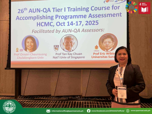 Leading the SPAMAST delegation is Dr. Lynette A. Bontia, the College President. Accompanying Dr. Bontia are several key officials, including Dr. Edelyn S. Albiso, Vice President for Administration and Finance; Mr. Edwin G. Ostique, Supervising Administrative Officer; Dr. Jovelyn L. Franca, Director for Quality Assurance; Prof. Rommel Cabalquino, Faculty President; and Ms. Dawn A. Limao, College Secretary.