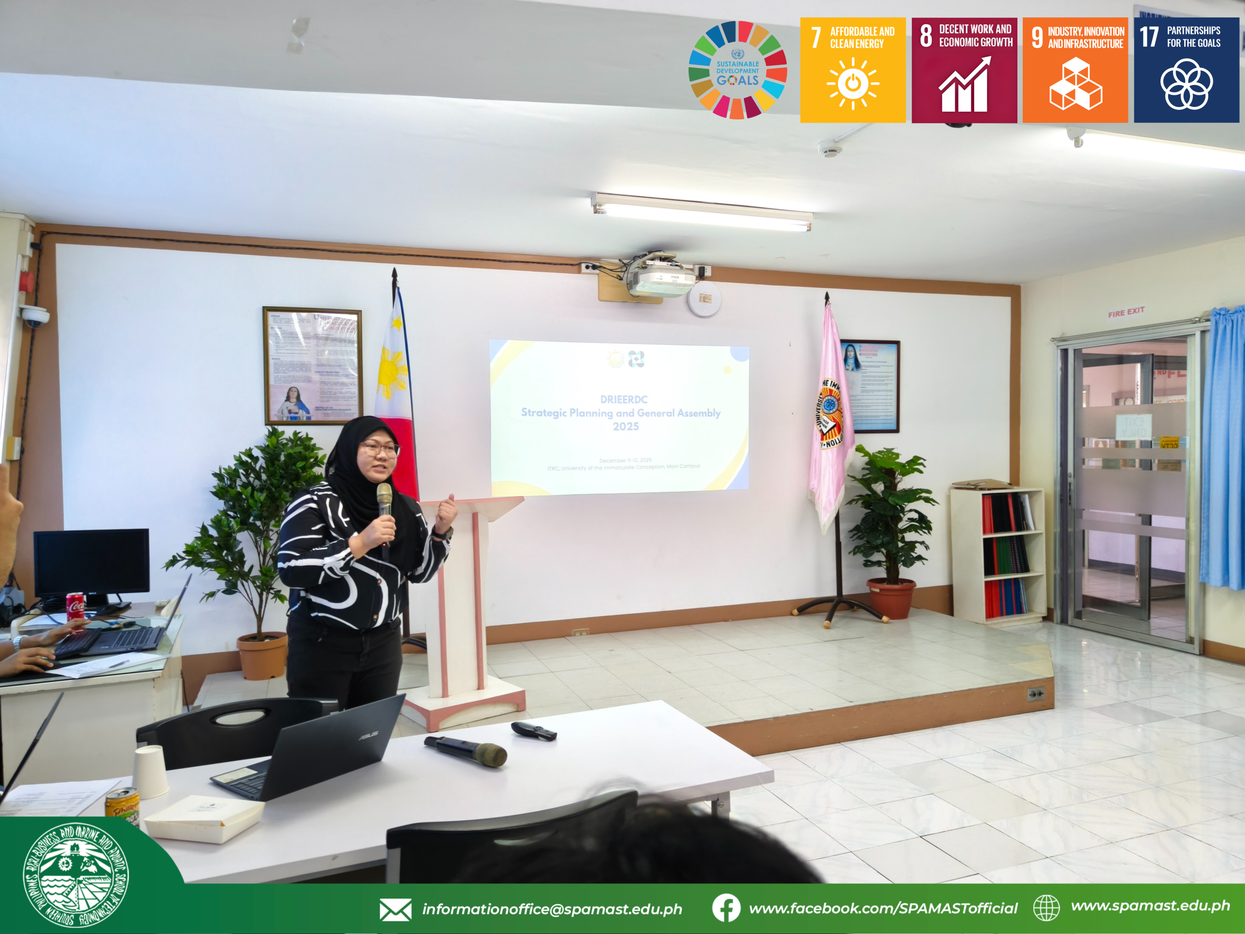 The Southern Philippines Agri-Business and Marine and Aquatic School of Technology (SPAMAST) actively participated in the Davao Region Industry, Energy and Emerging Technologies Research and Development Consortium (DRIEERDC) Strategic Planning and General Assembly held on December 11–12, 2025, at the University of the Immaculate Conception (UIC) Main Campus, F. Selga Street, Davao City.