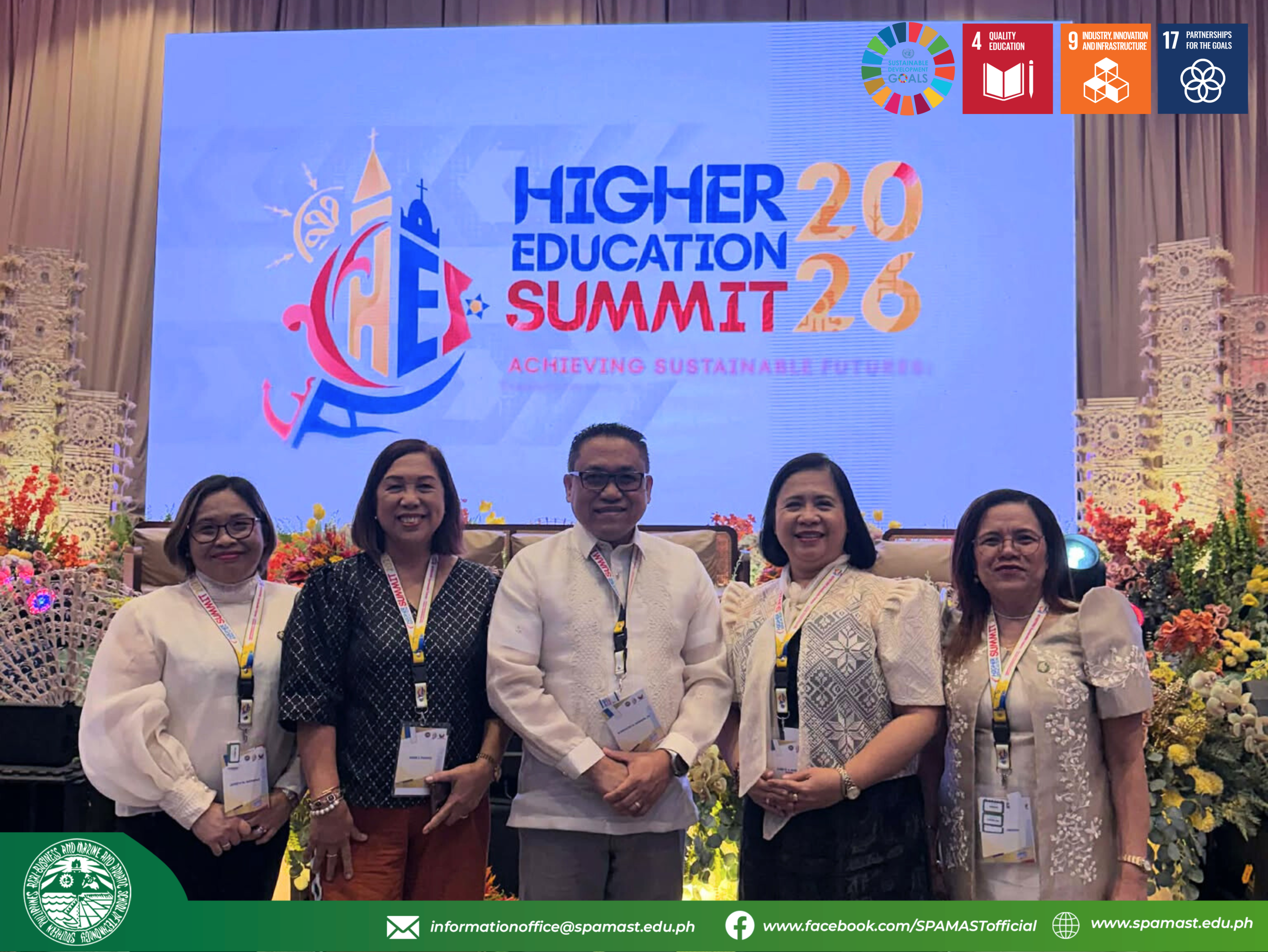 The Southern Philippines Agri-Business and Marine and Aquatic School of Technology (SPAMAST) actively participated in the Higher Education Summit 2026 held from March 10–12, 2026 at the SMX Convention Center Clark. The College President, Dr. Lynette A. Bontia, and Board Secretary, Ms. Michelle Elemino, represented SPAMAST in the three-day gathering of higher education leaders, policymakers, and development partners focused on advancing transformative education and strengthening institutional collaborations.