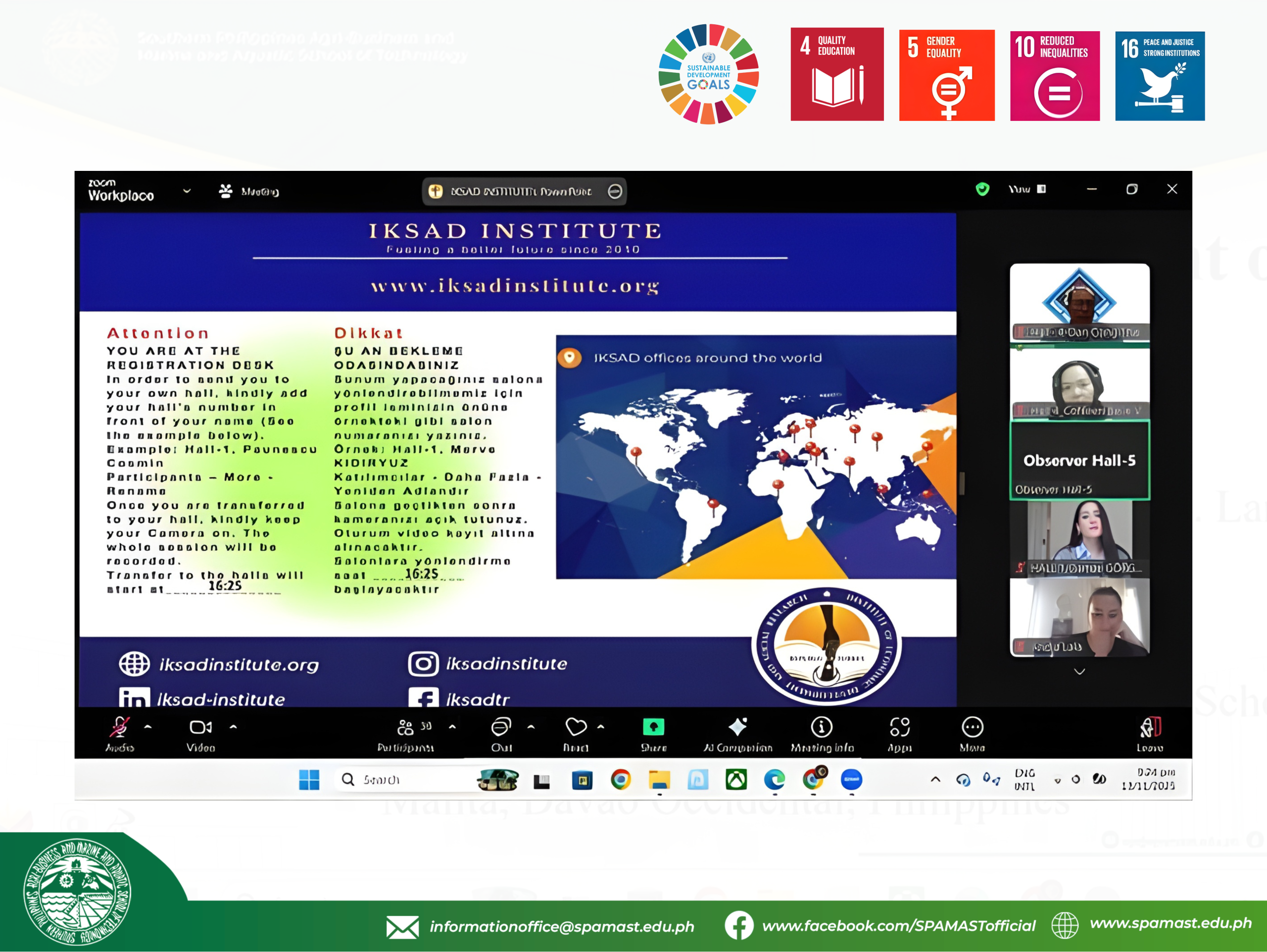 The Southern Philippines Agri-Business and Marine and Aquatic School of Technology (SPAMAST) marked another milestone in its growing international academic presence after participating in the 9th International Ankara Multidisciplinary Studies Congress held on November 13–14, 2025, in Ankara, Türkiye. Organized by the IKSAD Institute, the congress gathered scholars and researchers from different parts of the world to share studies contributing to global knowledge and multidisciplinary collaboration. SPAMAST’s involvement was made possible through the support of the Office of Student Affairs and Services (OSAS) and the Institute of Teacher Education (ITEd).
