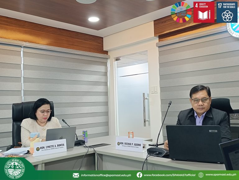 The meeting was presided over by Commissioner Ricmar P. Aquino, Chairperson of the SPAMAST Board of Trustees, and attended by Board members, institutional officials, and CHED representatives. The session tackled key policy updates, institutional developments, and strategic initiatives to strengthen SPAMAST’s commitment to academic excellence, research advancement, and community service. All agenda items were deliberated and duly approved by the Board.