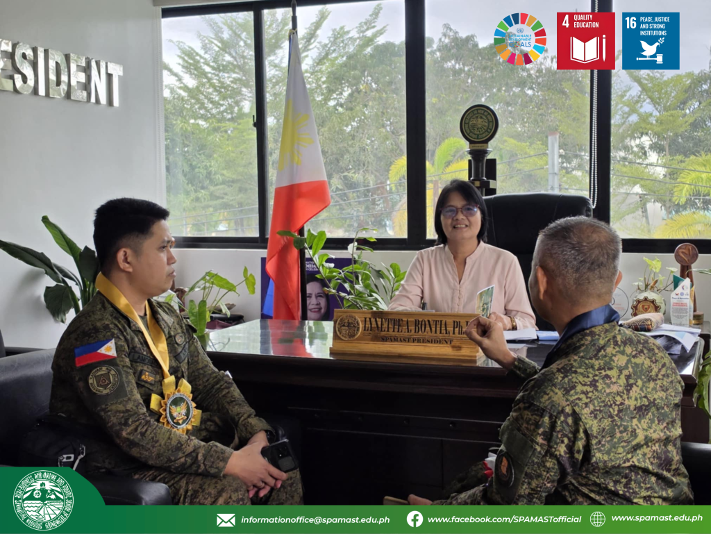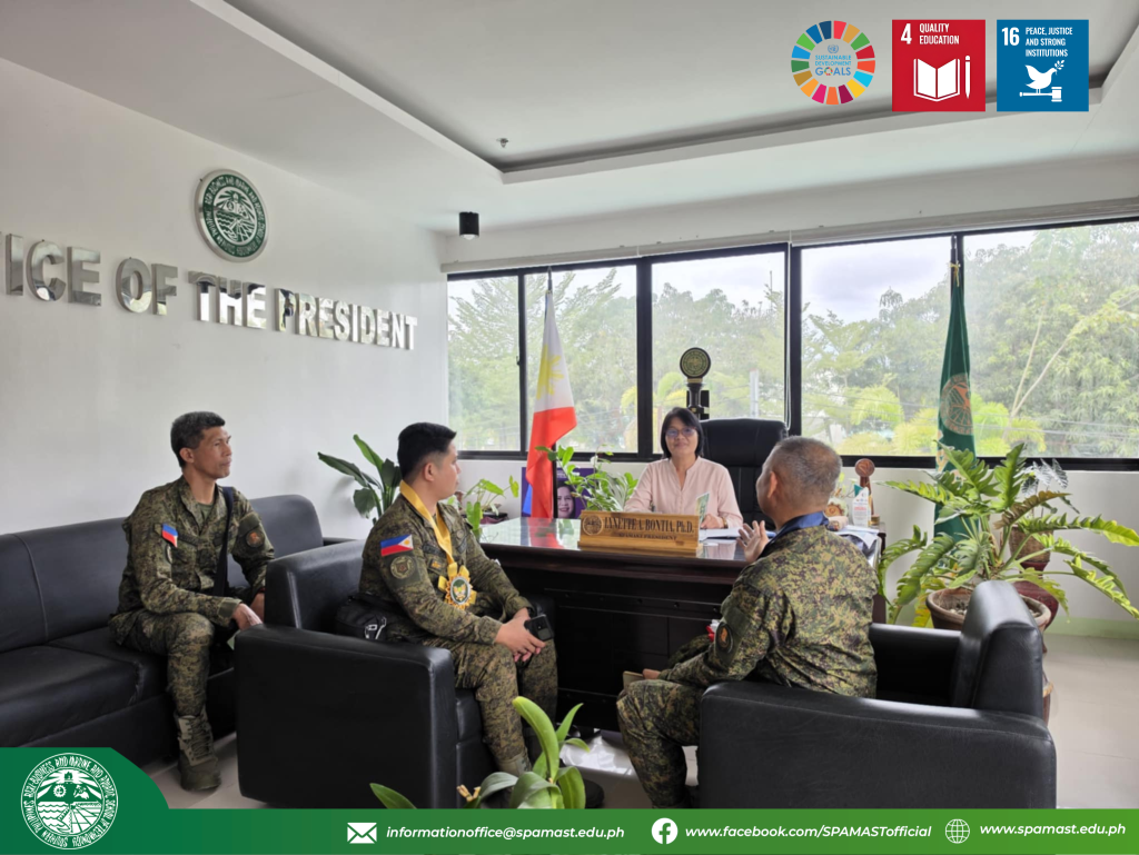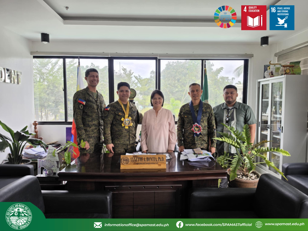 The Southern Philippines Agri-Business and Marine and Aquatic School of Technology (SPAMAST) welcomed distinguished officials from the Philippine Army during a courtesy visit that highlighted the institution’s commitment to strengthening its Reserve Officers’ Training Corps (ROTC) program.